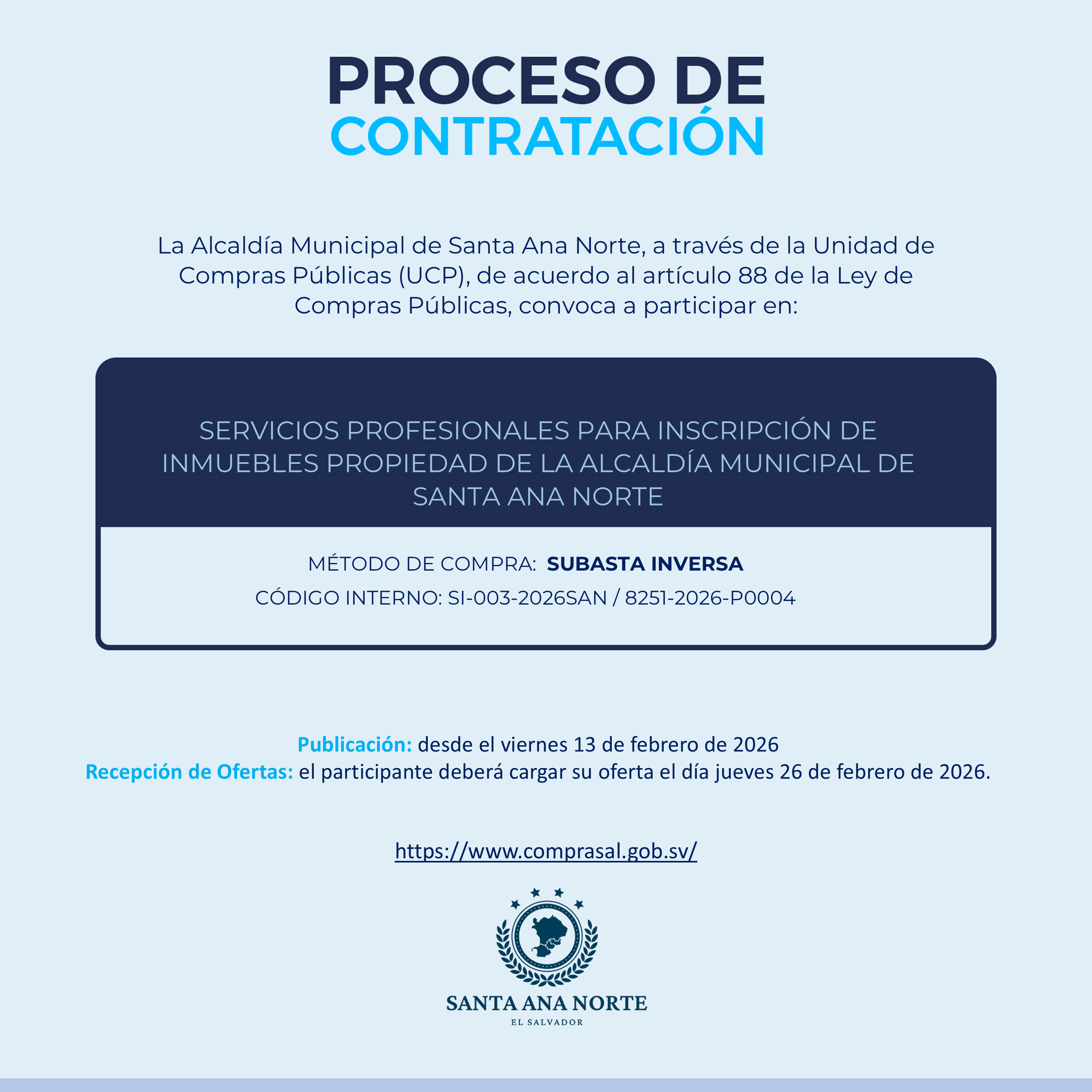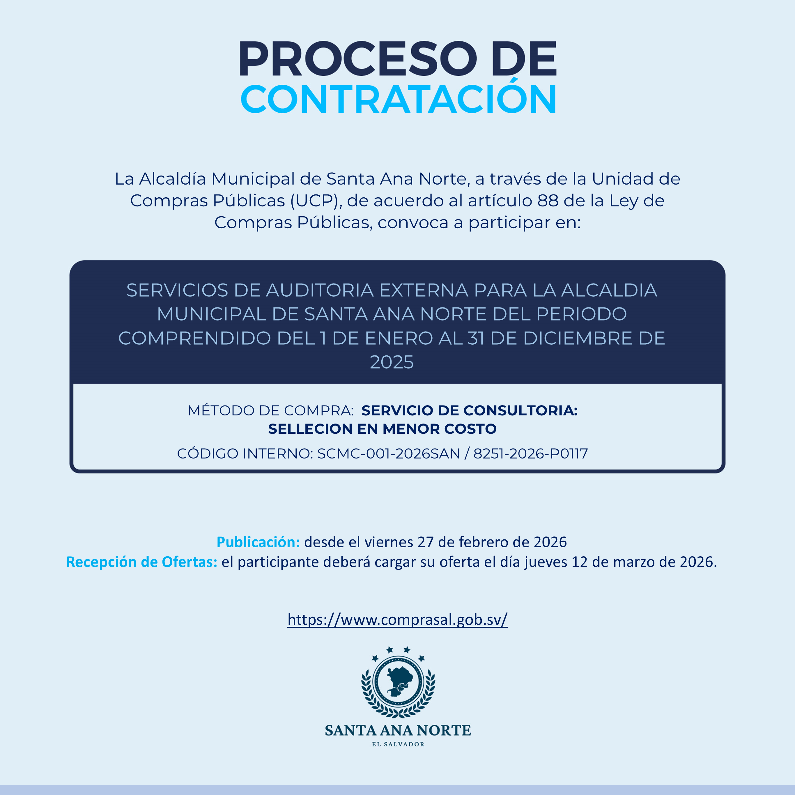 SERVICIOS DE AUDITORIA EXTERNA PARA LA ALCALDIA MUNICIPAL DE SANTA ANA NORTE DEL PERIODO COMPRENDIDO DEL 1 DE ENERO AL 31 DE DICIEMBRE DE 2025