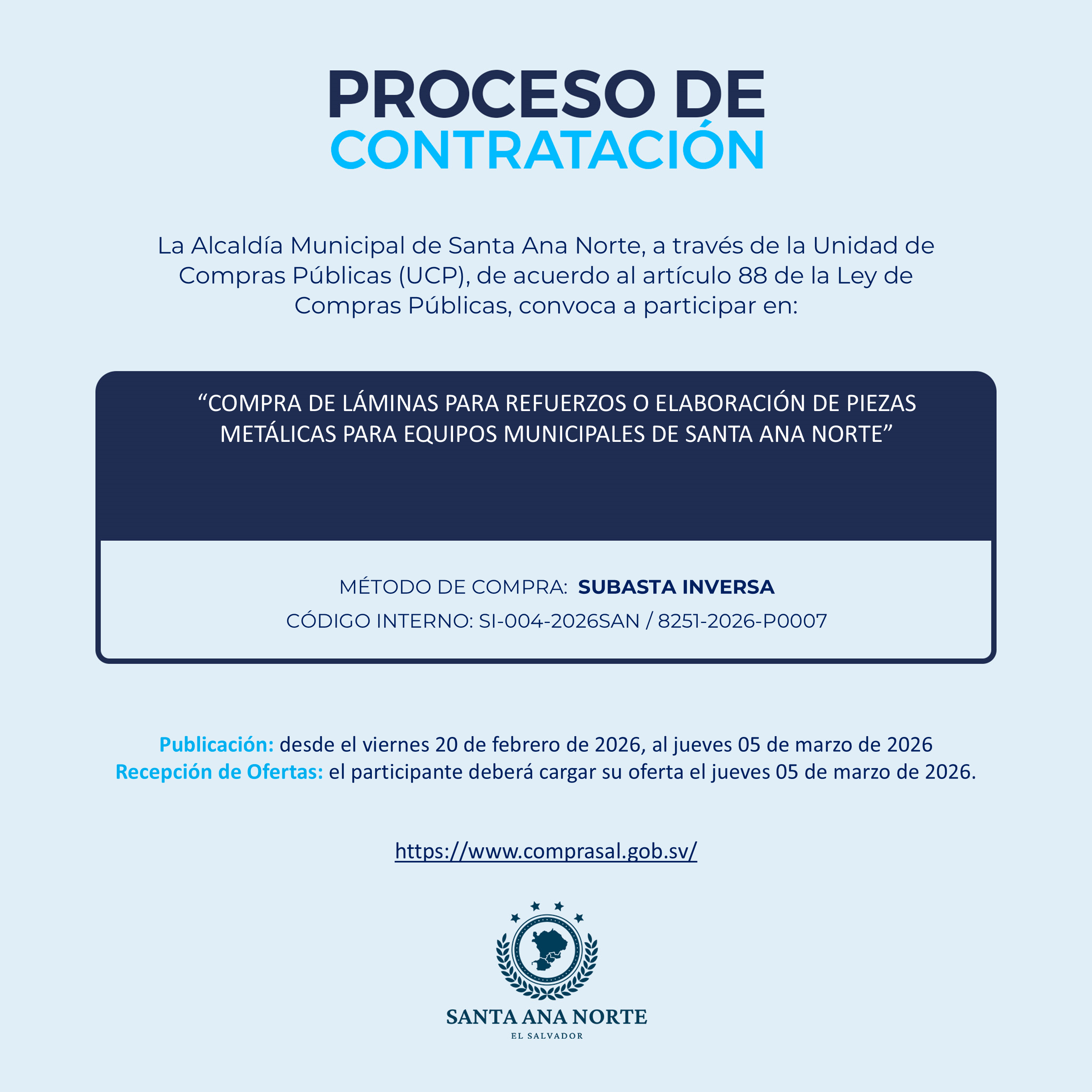 COMPRA DE LÁMINAS PARA REFUERZOS O ELABORACIÓN DE PIEZAS METÁLICAS PARA EQUIPOS MUNICIPALES DE SANTA ANA NORTE