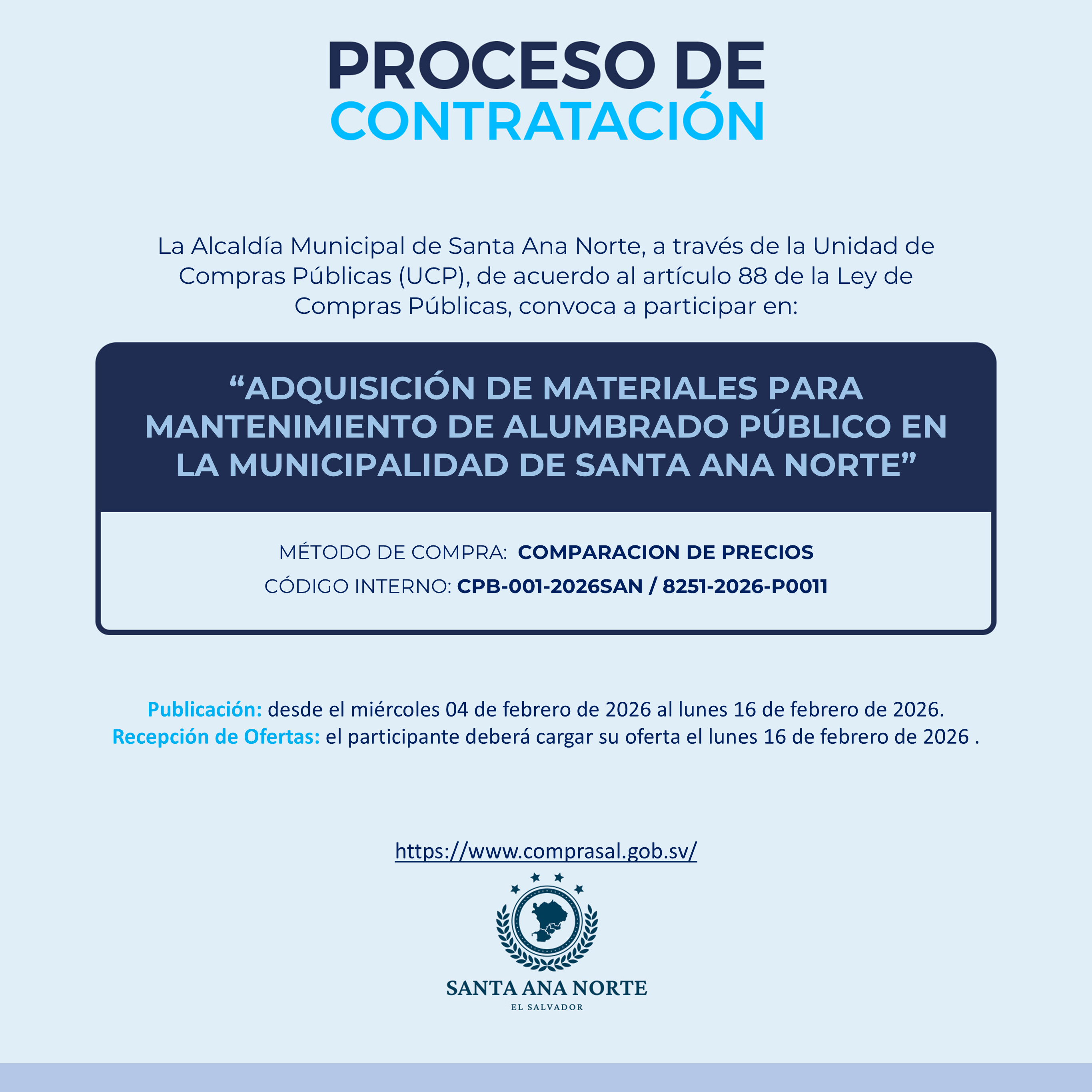 ADQUISICIÓN DE MATERIALES PARA MANTENIMIENTO DE ALUMBRADO PÚBLICO EN LA MUNICIPALIDAD DE SANTA ANA NORTE