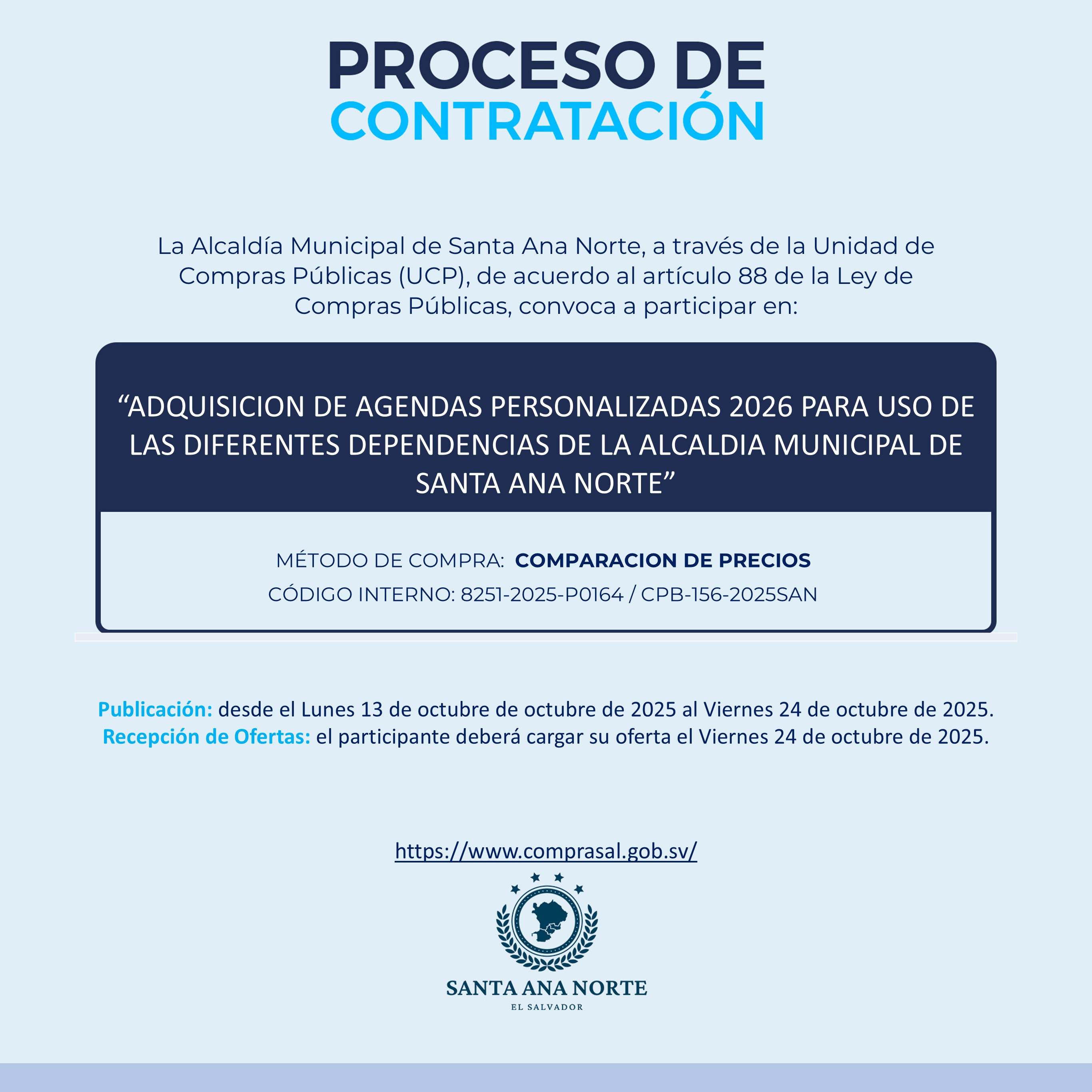 ADQUISICION DE AGENDAS PERSONALIZADAS 2026 PARA USO DE LAS DIFERENTES DEPENDENCIAS DE LA ALCALDIA MUNICIPAL DE SANTA ANA NORTE