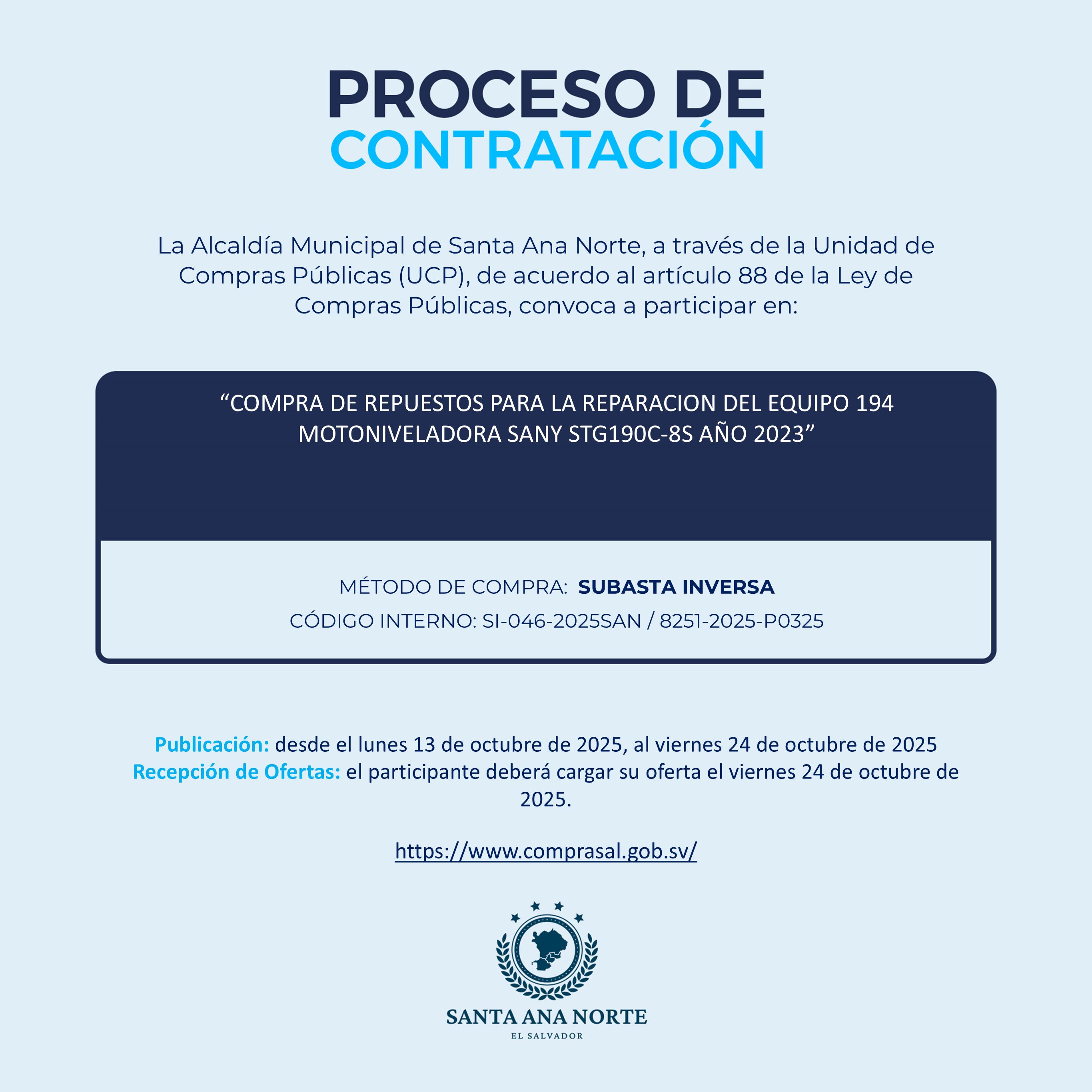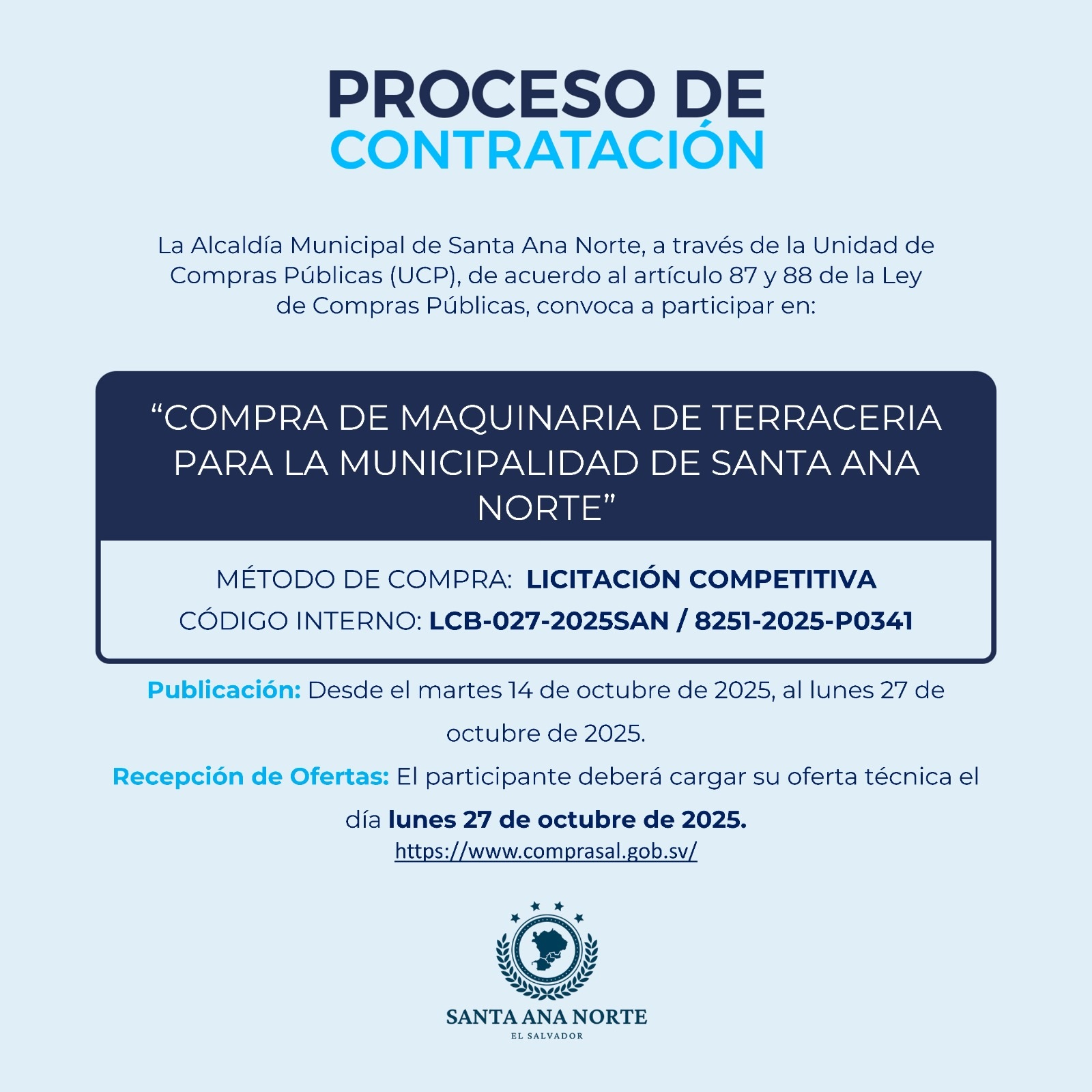 COMPRA DE MAQUINARIA DE TERRACERIA PARA LA MUNICIPALIDAD DE SANTA ANA NORTE