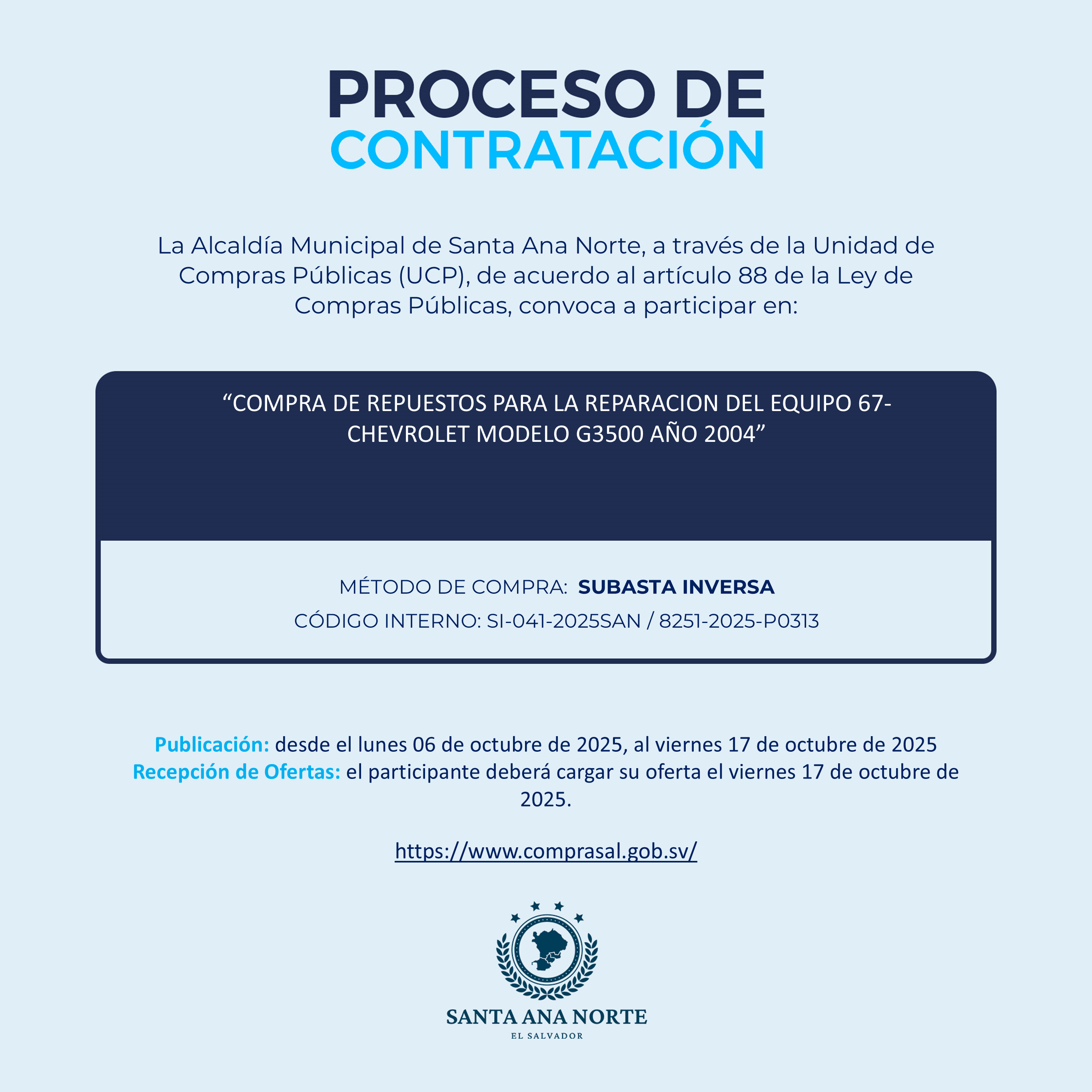 COMPRA DE REPUESTOS PARA LA REPARACION DEL EQUIPO 67-CHEVROLET MODELO G3500 AÑO 2004