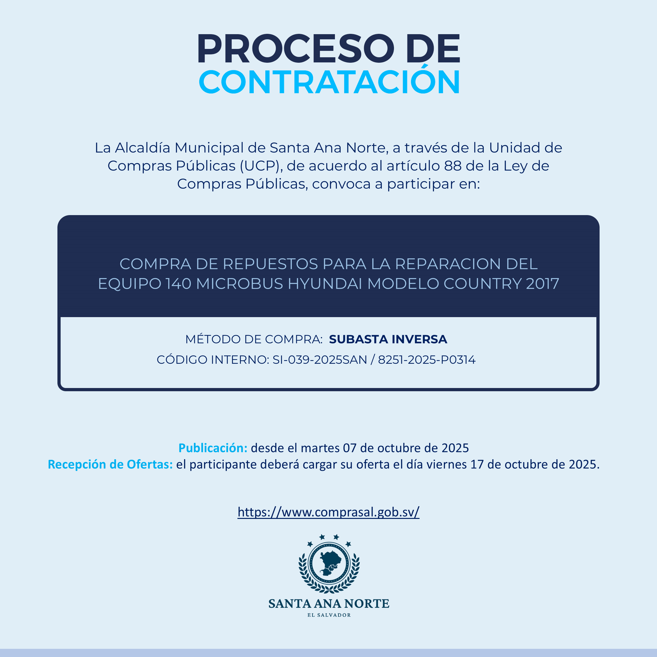 COMPRA DE REPUESTOS PARA LA REPARACION DEL EQUIPO 140 MICROBUS HYUNDAI MODELO COUNTRY 2017