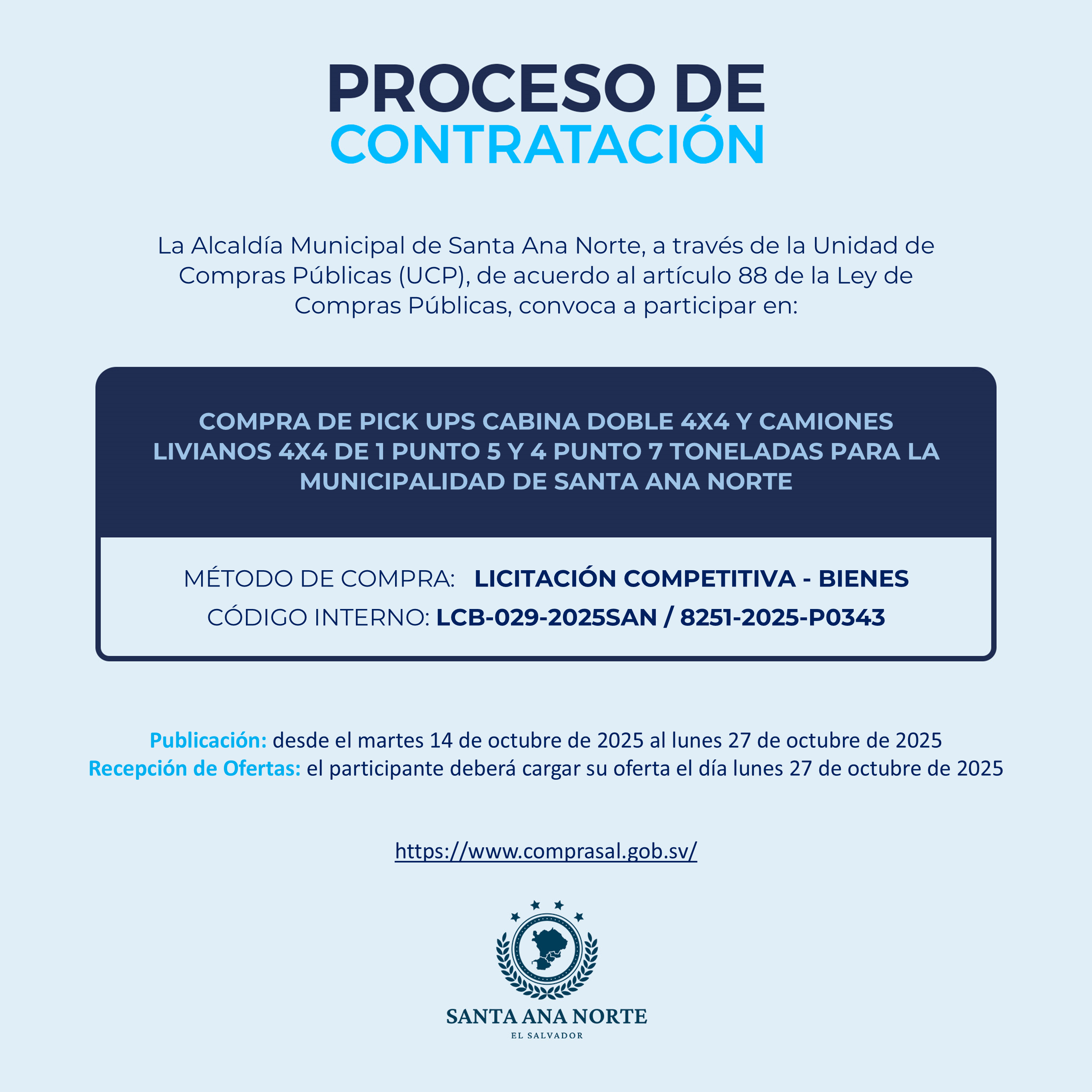 COMPRA DE PICK UPS CABINA DOBLE 4X4 Y CAMIONES LIVIANOS 4X4 DE 1 PUNTO 5 Y 4 PUNTO 7 TONELADAS PARA LA MUNICIPALIDAD DE SANTA ANA NORTE