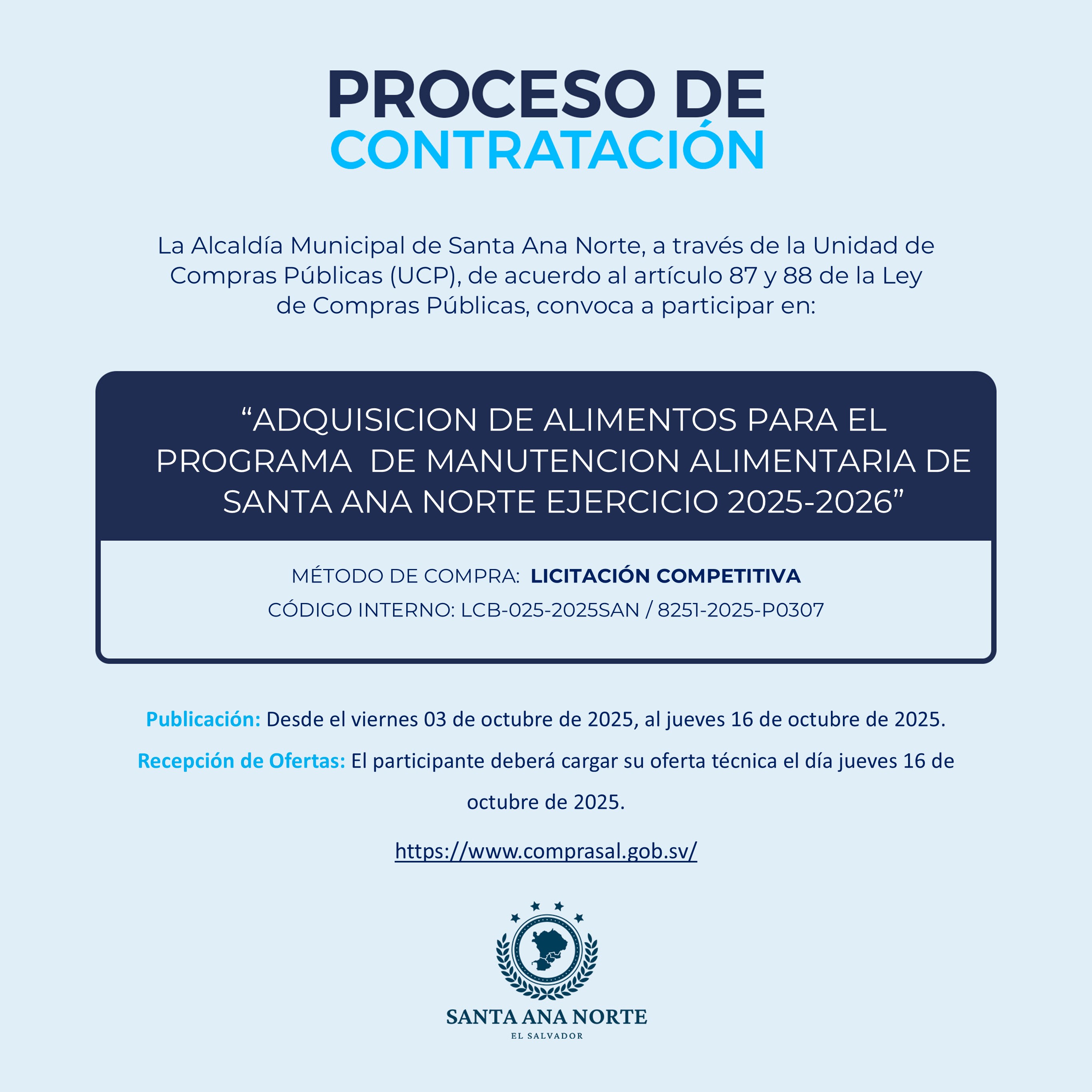 ADQUISICION DE ALIMENTOS PARA EL PROGRAMA DE MANUTENCION ALIMENTARIA SANTA ANA NORTE EJERCICIO 2025-2026
