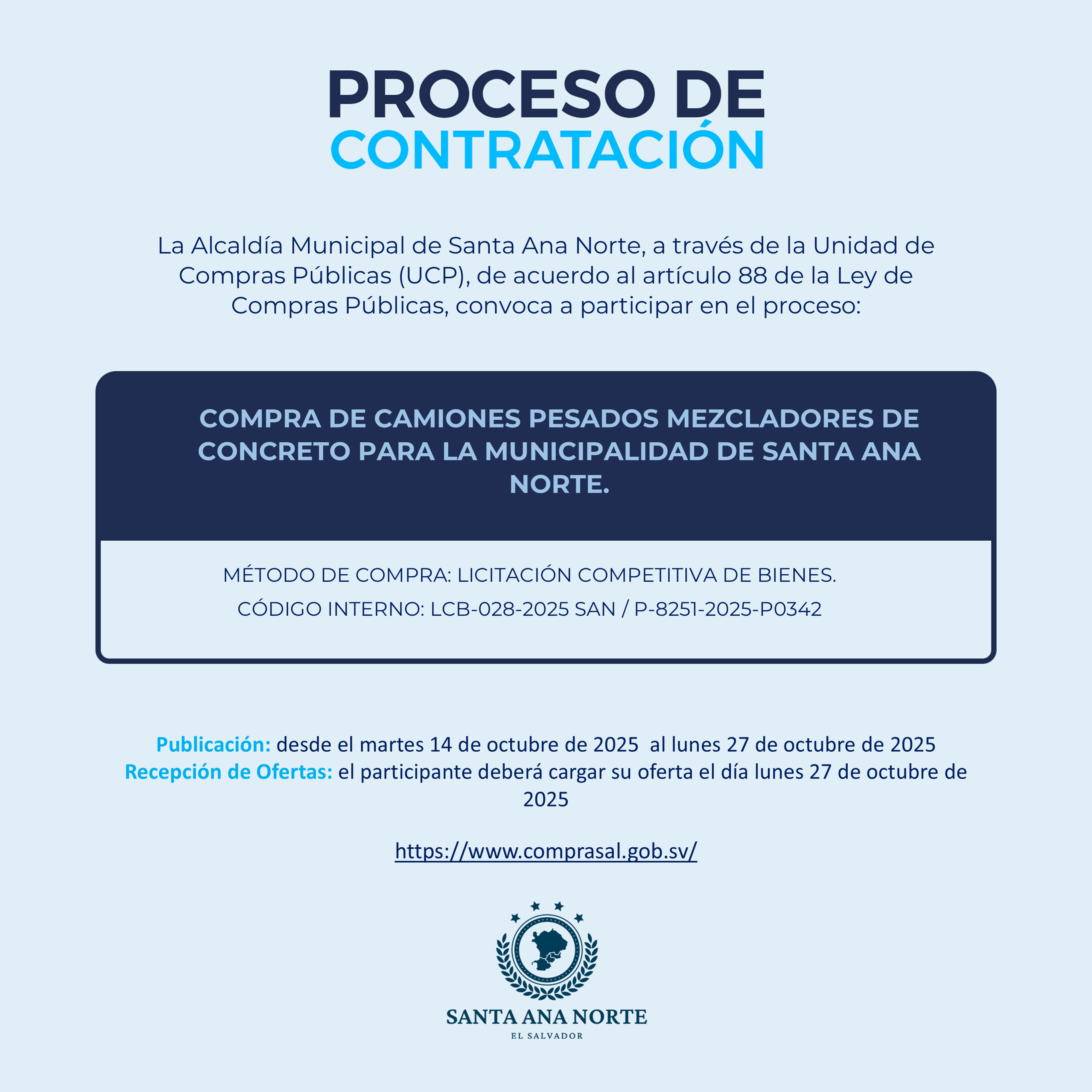 COMPRA DE CAMIONES PESADOS MEZCLADORES DE CONCRETO PARA LA MUNICIPALIDAD DE SANTA ANA NORTE