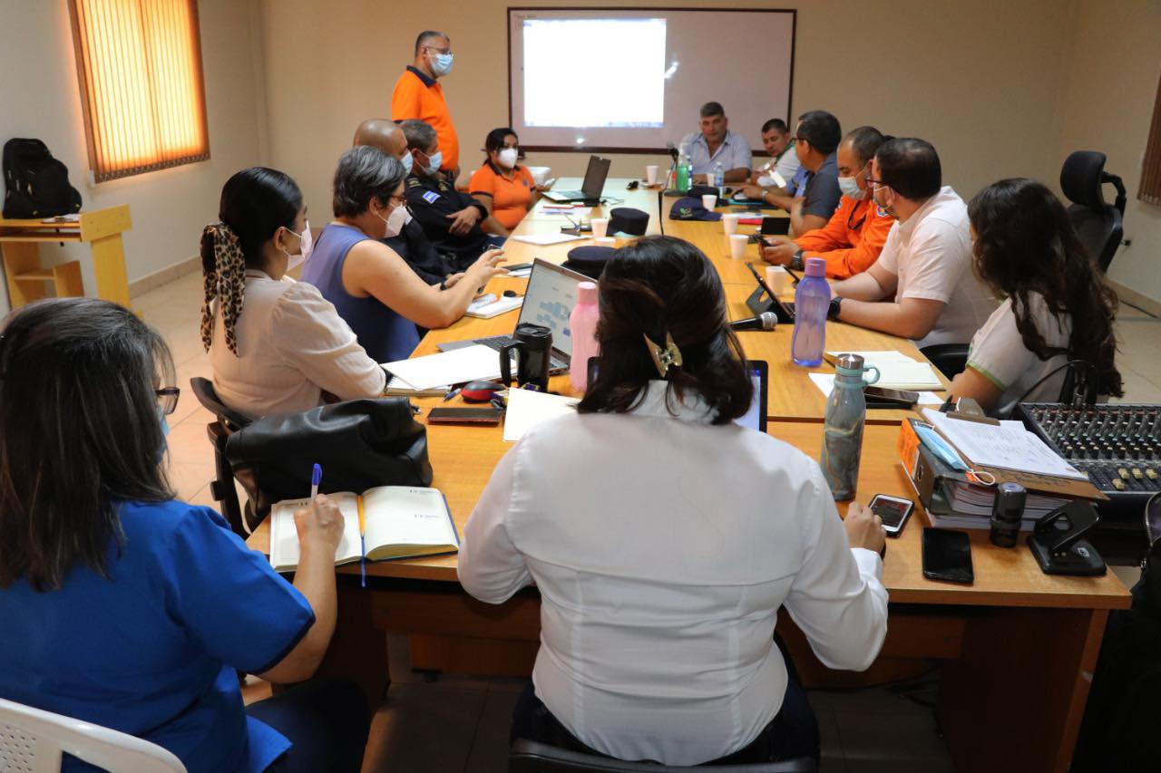 Con las instituciones que integramos el sistema local de Protección Civil sostuvimos una reunión para conocer los 12 planes contingenciales que se ejecutarán en #Metapán en diferentes épocas de este 2022.